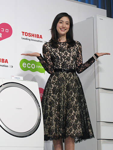 女優天海祐希(46)がCMキャラクターを務める「東芝生活家電」の新製品発表会が29日、都内で行われた。