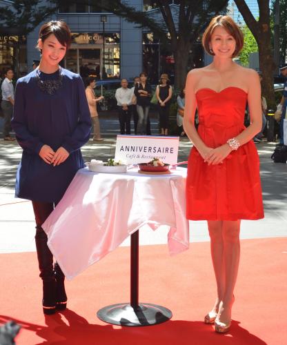 「アニヴェルセル カフェ&レストラン」のリニューアルオープンイベントに登場した米倉涼子(右)と剛力彩芽