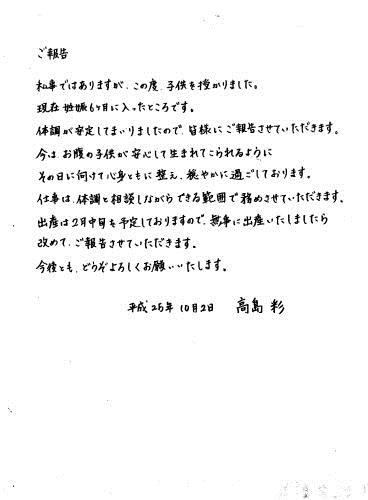 妊娠6カ月であることを発表した高島彩アナ アヤパン妊娠6カ月 来年2月出産!「ゆず」北川パパに ギャラリーで見る この記事のフォト 2013年10月03日の画像一覧 もっと見る 2013年10月03日の画像をもっと見る