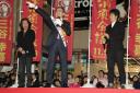 まるで選挙投票日の様相だ。スーツに白い手袋、髪を横分けにした三谷監督は「最後のお願いにやって参りました」と一票を求める立候補者のようにあいさつ。4本に束ねたマイクで「私には夢がある」と米国のマーティン・ルーサー・キング牧師の名言を引き合いにするなど“迷演説”を繰り広げた。