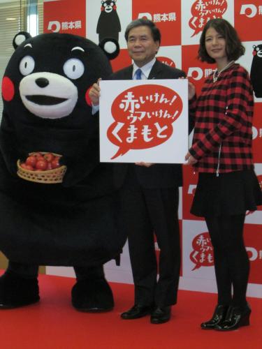 妊娠8カ月に入ったタレントのスザンヌ(27)が5日、都内で熊本県の特産品をPRした。