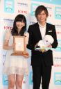「ベストスマイル・オブ・ザ・イヤー2013」授賞式で、著名人賞を受賞した指原莉乃(左)と山本裕典
