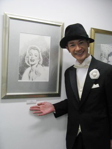 故美空ひばりさんやマリリン・モンロー、エルヴィス・プレスリーら往年のスターを描いた絵画23点と自身の漫画の原画などを展示。会場で会見し、「あがり症なんで、きのうの夜は眠れませんでした」と苦笑い。26万円の価格が付いたモンローの絵は早速、美川憲一(67)が購入したそうで、「尊敬するお姉さま。うれしいです!」と声を弾ませていた。