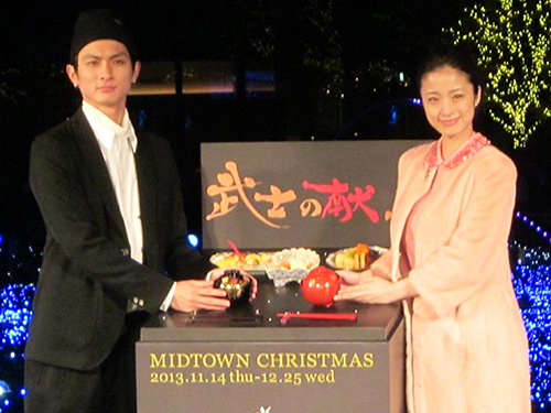 映画「武士の献立」(12月14日公開)に主演する上戸彩(28)と高良健吾(26)が14日、東京ミッドタウン(東京都港区)のクリスマスイルミネーション点灯式に出席した。