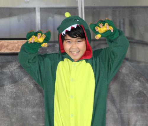<映画「ウォーキング with ダイナソー」実物大ダイナソートラック出発式>トラックに乗って登場した恐竜ファッションの鈴木 福くん 恐竜トラック「見た人に幸運なことがあるかも」 ギャラリーで見る この記事のフォト 2013年11月27日の画像一覧 もっと見る 2013年11月27日の画像をもっと見る