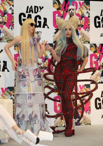 来日中の米歌姫レディー・ガガ(27)が1日、都内で開かれたガガそっくりの等身大人形「ガガドール」のお披露目会に登場した。新アルバム「アートポップ」の発売を記念して日本で制作。スポーツ紙で作ったドレスを着た人形もあり、ガガは「本当にそっくり」と喜んでいた。