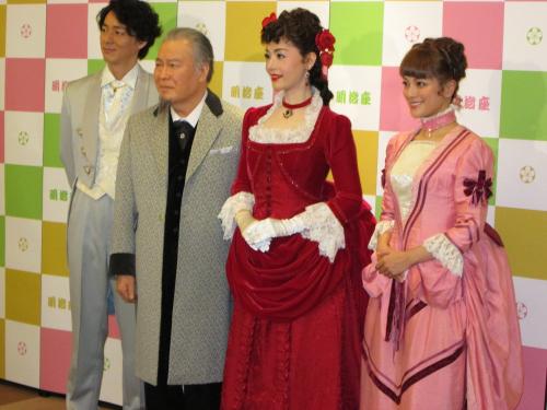 大地真央(57)、江守徹(69)、牧瀬里穂(42)ら豪華共演も話題の舞台「コンダーさんの恋~鹿鳴館騒動記~」(作・演出G2)が2日、東京・明治座で幕を開けた。