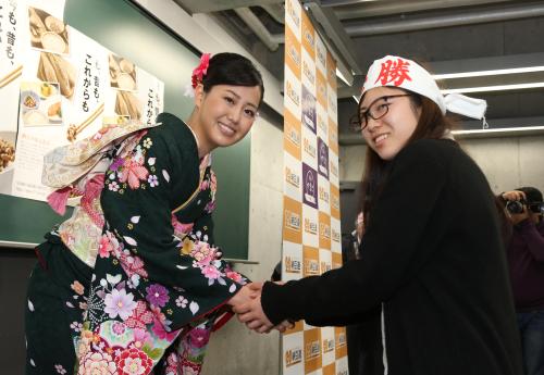 受験生とともに納豆をかき混ぜ、笑顔を見せる宮崎香蓮(前列中央) “納豆クイーン”宮崎香蓮 受験生にエール「粘り強く頑張って」 ギャラリーで見る この記事のフォト 2014年01月09日の画像一覧 もっと見る 2014年01月09日の画像をもっと見る