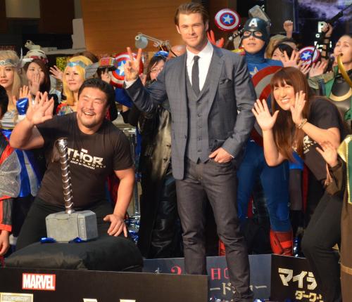 初来日中の豪俳優クリス・ヘムズワース(30)が26日、都内で主演映画「マイティ・ソー ダークワールド」(2月1日公開)のイベントに登場した。
