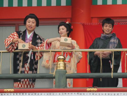 神田明神 節分祭豆まき式に登場した(左から)山崎静代、田中麗奈、吉沢悠 しずちゃん 山ちゃん追い払いたい「なるべく会いたくない」 ギャラリーで見る この記事のフォト 2014年02月03日の画像一覧 もっと見る 2014年02月03日の画像をもっと見る