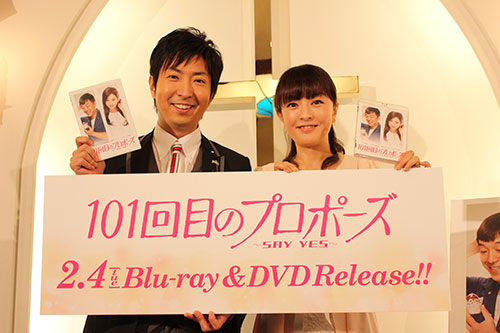 映画コメンテーターの有村昆氏(36)と、元日本テレビキャスターの丸岡いずみ(42)が3日、東京都内で行われた映画「101回目のプロポーズ~SAY YES~」のブルーレイ& DVD発売イベントに登場した。