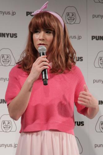 ファッションブランド「PUNYUS」デビュー記者発表会で、女装姿を披露した藤森慎吾