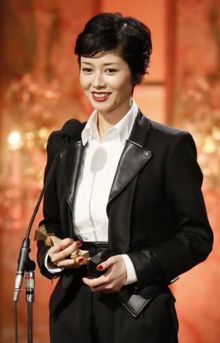 真木よう子 35年ぶりダブル受賞 うっすら目も潤む