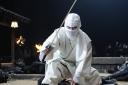 本能寺のセットから地面に叩き付けられ、炎に巻かれながら、松方弘樹(71)らが演じる黒忍者軍団と激しい殺陣に挑んだ。白い忍者装束の唐沢は「松方さんに斬られることはあるかもしれないが、斬る機会は今後ないと思う。良い経験でした」と笑顔。