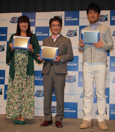 「ベネッセコーポレーション」が展開する小学生向け教育用タブレット「チャレンジタッチ」をPR。漢字の書き順や算数などを体験し「私も使おうかな、断ってるクイズ番組に出れる」とニヤリ。