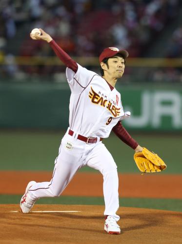 楽天の本拠地開幕戦で、宮城県栗原市出身で昨年のNHK連続テレビ小説「あまちゃん」などを手掛けた人気脚本家の宮藤官九郎(43)が始球式を務めた。