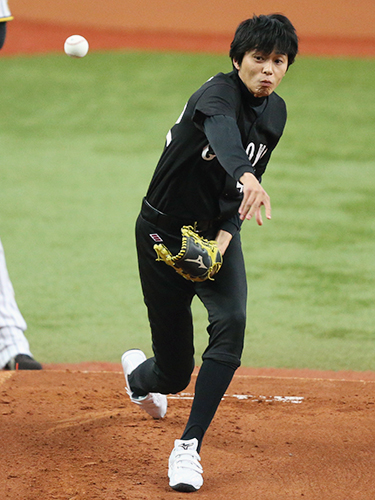 12日公開の主演映画「クローズEXPLODE」(監督豊田利晃)の公開日「412」の背番号が刺しゅうされたユニホームでマウンドへ。中日・大島の背後を通過する“暴投”となり、「やってやるという気迫があふれてきました」と苦笑い。その後は大阪市内で同作の舞台あいさつに登場。NHK朝ドラ「ごちそうさん」出演で慣れ親しんだ街並みに「阿波座に住んでランニングもしたので懐かしかった」と笑顔だった。