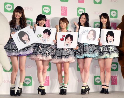LINEは既に48グループ内で普及しており、高橋は「メンバーやスタッフさんとの連絡で毎日のように使わせていただいている」と説明。LINEのスタンプは、文章を使わずに自分の気持ちなどを伝える絵文字のようなもの。総合プロデューサーの秋元康氏(55)も「めっちゃスタンプを送ってくる」(高橋)という。