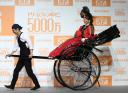 CMで扮した宝くじ好きの夫人と人力車引きのいでたちで登場。「ドリームジャンボ宝くじ」の1等・前後賞を合わせた5億5000万円の束が現れると、米倉は「これをつまみにお酒を飲みたい」とニヤリ。使い道については「ビバリーヒルズに家とか…全然想像がつかない」とし、「豪勢な結婚式は?」と水を向けられると「年も年なんで」と苦笑い。原田は「子供の頃の夢だった忍者屋敷を造りたい」と話した。