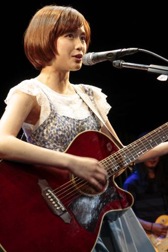 女優と歌手の活動を両立しており「女優としてはアクション映画に出たい。歌手としては、大好きな(音楽プロデューサーの)亀田誠治さんに曲をつくってもらいたい」と笑顔。100人のファンを前に、同曲やデビュー曲「明日も」など4曲を披露した。