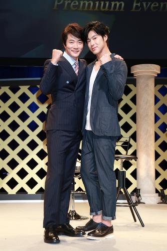 韓国男性デュオ「東方神起」のユンホ(28)と韓国俳優クォン・サンウ(37)が27日、都内で、ダブル主演した韓国ドラマ「野王」のDVD購入者を対象にしたイベントを行った。