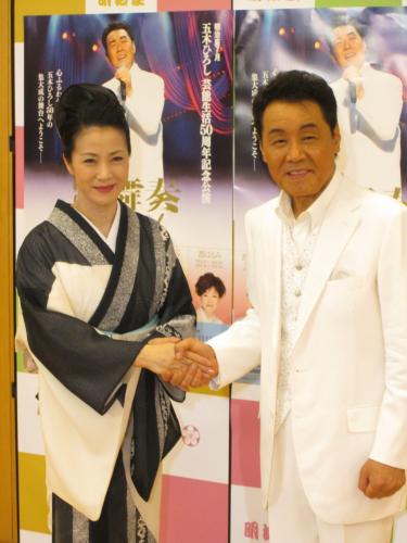 歌手五木ひろし(66)の芸能生活50周年記念公演「歌舞奏スペシャル」が2日、東京・日本橋浜町の明治座で初日を迎えた。都はるみ(66)、由紀さおり(65)ら女性歌手5人が日替わりでゲスト出演。五木は琴など9種の楽器演奏も披露する。