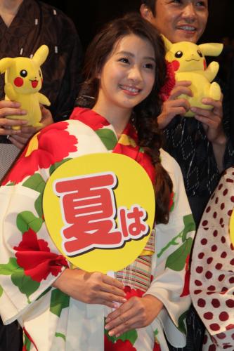 女優の足立梨花(21)が6日、都内で映画「ポケモン・ザ・ムービーXY『破壊の繭とディアンシー』」の完成披露舞台あいさつに浴衣姿で出席した。