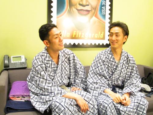 「平成中村座」NY公演初日を前に楽屋で成功を誓う勘九郎(左)と七之助