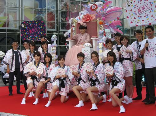 男性アナウンサーや男性社員が担ぐ特製みこしに乗って登場し、「クレオパトラになった気分。もっと“わっしょい”って言いたかった」とご満悦だった。
