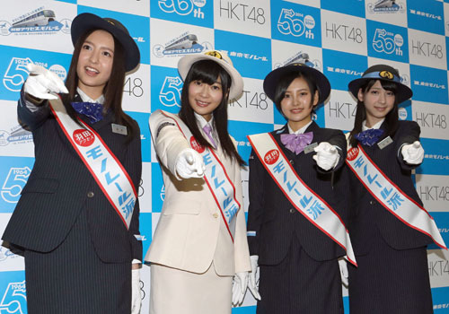羽田空港第2ビル駅(東京都大田区)で開かれた東京モノレールの新型車両、10000形(6両編成)の出発式に兒玉遥(17)松岡菜摘(17)森保まどか(16)とともに出席。1日駅長として「出発進行!」と合図を送り、新型車両の第1便の発車を見届けた。