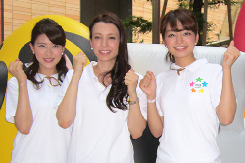 「汐博2014」の内覧会に登場した(左から)郡司恭子、葉山エレーヌ、後藤晴菜の日テレ各アナ