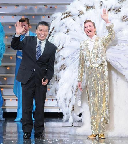 雪組公演を観劇後、トップスター壮一帆(そう・かずほ)に返還。「無重力の中であでやかに飛翔する扇子を眺めました。ISSでもチームワークが必要でしたが(きょうは)皆さんの素晴らしいチームワークを拝見できました」と言葉を贈った。扇子は、宝塚歌劇100周年を記念して歌劇団が委託していたもので、今後、兵庫県宝塚市の「宝塚歌劇の殿堂」に展示される。