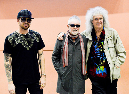 英ロックバンド「クイーン」が15日、関西国際空港着の航空機で9年ぶりに来日した。ギタリストのブライアン・メイ(67)とドラムスのロジャー・テイラー(65)に加え、新ボーカルに起用した米歌手アダム・ランバート(32)が前公演先のソウル市から飛来。約200人が大歓声で出迎えた。