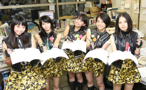 5人組アイドルグループ「ベイビーレイズ」が東京・越中島のスポーツニッポン新聞社を訪れ、署名活動を行った。