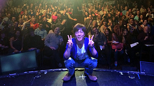 立ち見も出る大入り満員650人の観客を前に、全編英語のネタを披露。「アメリカでもそのまま続けろ。アメリカでも有名になるぞ」(32歳米男性) 「笑い過ぎて、ほっぺが痛い」(28歳米男性)「すごく知的で、斬新な形でした」(46歳米男性)など大好評を博した。
