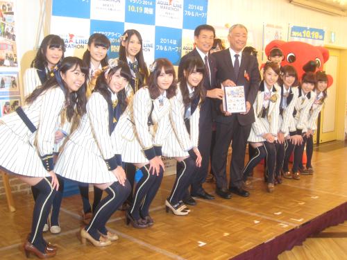 AKB48の入山杏奈(18)ら千葉県出身の48グループメンバー14人が3日、都内で、千葉県と日本郵便株式会社関東支社の包括連携協定式に出席した。