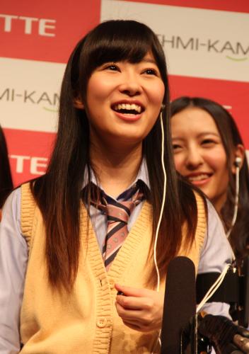 指原莉乃(21)ら「HKT48」のメンバーが21日、都内でロッテウェアラブルデバイス「リズミカム」記者発表会に出席。20日にプロ野球パ・リーグのクライマックスシリーズ(CS)ファイナルステージを制し、ソフトバンクの日本シリーズが決定。勝利の瞬間に立ち会った“勝利の女神”若田部遥(16)にエールを送った。