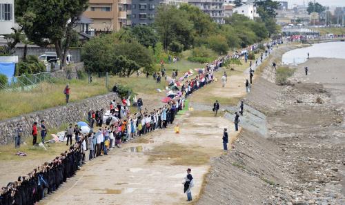 イベントには、元雪組スターの汐美真帆(41)が宮城県石巻市立荻浜中の全校生徒11人を招待。阪神大震災で被災し、東日本大震災後に宮城県でボランティア活動に取り組んできた汐美は、「これからの東北の復興を支えるのは彼らや彼女ら。復興した宝塚の街を見てほしい」と話していた。