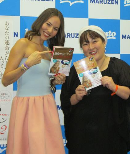 書籍「運命のフォーチュン Amulet2」の発売イベントを開いた道端ジェシカ(左)と占い師のイヴルルド遙華さん