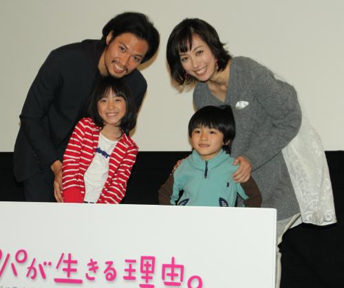 夫婦でがんになり余命宣告されながらも、夢を持ち、強い愛に満ちた家族の物語。夫役の青木崇高(34)、子供役の渡邊このみ(8)、五十嵐陽向(5)と本物の家族のように仲むつまじい様子で、結婚願望を聞かれると「今はこの家族が最高だと思っているので、これ以外の家族は考えられない」と話した。