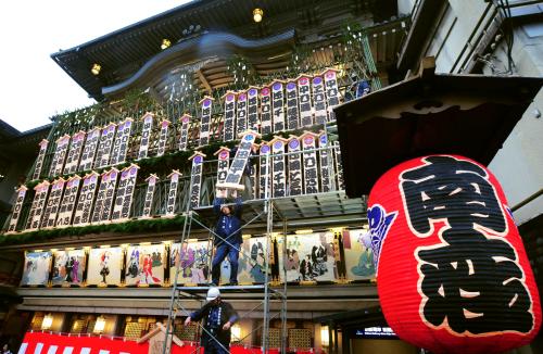 京都・南座で「まねき上げ」 恒例「吉例顔見世興行」前に