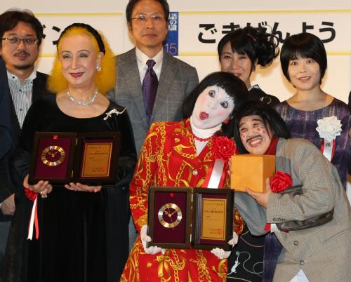 「2014ユーキャン新語・流行語大賞」表彰式で、「妖怪ウォッチ」のジバニャンにパンチする日本エレキテル連合の中野聡子(右手前)と橋本小雪 Photo by スポニチ 消えるジンクスも…エレキテル スギちゃんの道は「ダメよ~ダメダメ」 ギャラリーで見る この記事のフォト 2014年12月02日の画像一覧 もっと見る 2014年12月02日の画像をもっと見る