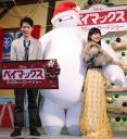 ヒロと一緒に冒険をするケアロボットの等身大ベイマックスも登場。まばたきもする精巧な作りに菅野は「かわいい。触りたくなっちゃう」と思わずハグ。「肩が凝っているようですね。旅に出てみてはいかが」とアドバイスされると、「優しい言葉をありがとう。この作品(のキャンペーン)で福岡と大阪に行くから楽しみだよ」と感激の面持ちだった。