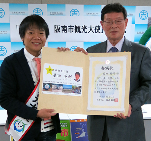 今年8月に芸名の「ほっしゃん。」から本名に戻したお笑い芸人の星田英利(43)が16日、大阪市内で、出身地・大阪府阪南市の観光大使就任式に出席した。