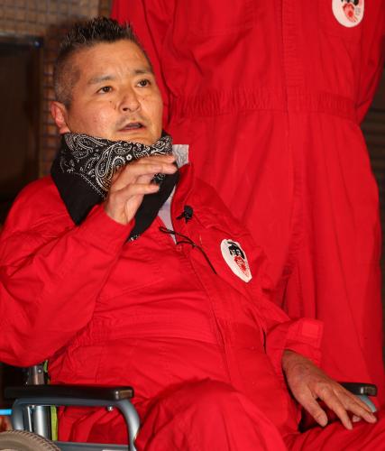 お客さんで埋まった猪木酒場の舞台であいさつする電撃ネットワークの三五十五(左から2人目) Photo by スポニチ 肺がん闘病中の三五十五 車椅子で舞台登場「早く完全復帰を」 ギャラリーで見る この記事のフォト 2014年12月22日の画像一覧 もっと見る 2014年12月22日の画像をもっと見る