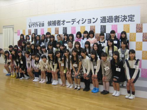 AKB48グループ第2回ドラフト会議の候補者オーディション3次審査が1日、都内で行われ、合格者49人が報道陣にお披露目された。49人中、バイトAKBのメンバー11人が入った。