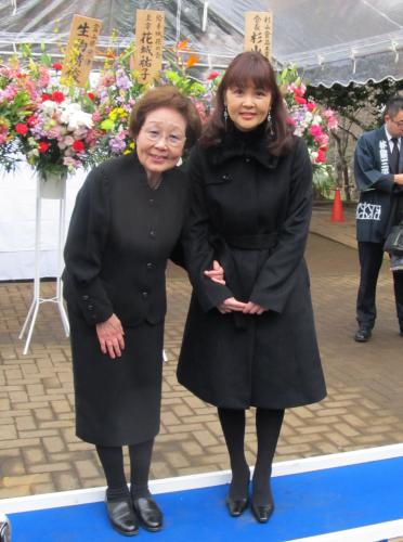 東京大空襲で両親ら家族6人を亡くした香葉子さんは、約1500人の出席者を前に「100歳まで生きて、その悲しみを伝えていきたい」とあいさつ。式典では次女で歌手の泰葉(54)が香葉子さんとともに作詞した新曲「桜舞う日は」を熱唱。長男の落語家、林家正蔵(52)、次男の林家三平(44)と妻、国分佐智子(38)も出席した。