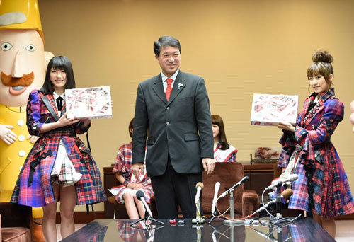 AKB48の総監督・高橋みなみ(23)、時期総監督の横山由依(22)が12日、国内5つめのAKB48グループ「NGT48」が誕生する新潟県を表敬訪問した。