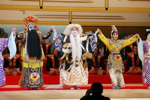 歌舞伎俳優の尾上菊之助が小姓弥生、獅子の精を踊り分ける「春興鏡獅子」を披露。中国側は中国国家京劇院が、秦始皇帝の死後、劉邦との覇権争いに敗れた項羽と虞姫(虞美人)の自害を描いた悲劇「覇王別姫」を上演した。両国の伝統芸能が一度に鑑賞できる貴重な機会になった。