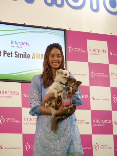 ペットと楽しく暮らす著名人を表彰する賞で、「うれしい。ネーミングも良いし、幸せになる」と笑顔。連れてきた愛犬のチワワ2匹ほか、ブタやカメ、ナマケモノなどさまざまなペットを飼っており、「うちはかなりにぎやかですよ」と明かした。「結婚相手は動物好きじゃないとダメ?」と聞かれると、「それは絶対!嫌いだと家では生きていけないかも」と笑った。